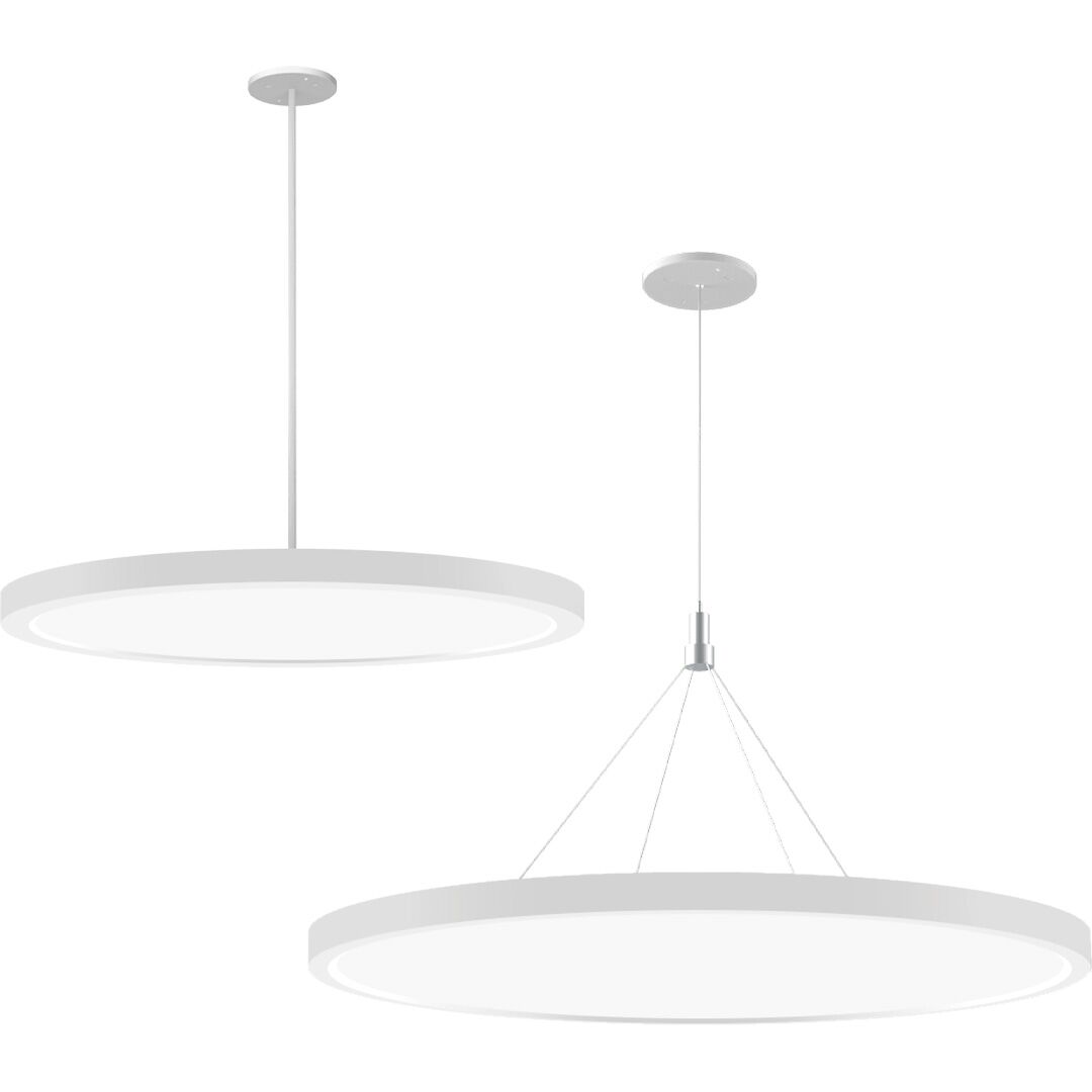 The Edge-lit Round Pendant is a sleek, ultra-low profile & unobtrusive LED suspension mount downlight with field CCT selectable function, available in size 12”, 16” & 24”.